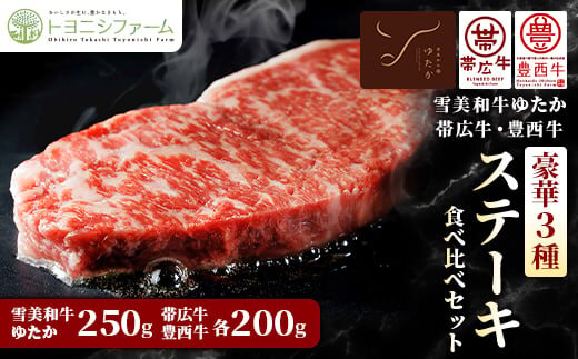 雪美和牛ゆたか・帯広牛・豊西牛 豪華3種ステーキ食べ比べセット【1556368】