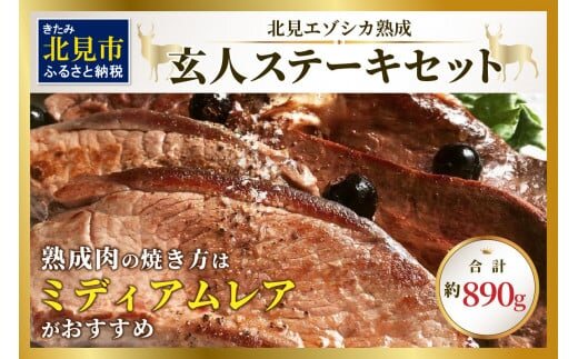 北見エゾシカ熟成肉 ドライエイジング玄人ステーキセット 約890g ( エゾシカ肉 しか 熟成肉 お肉 肉 鹿肉 ジビエ 熟成ジビエ ステーキ BBQ 焼き肉 焼肉 カット肉 )【025-0022】