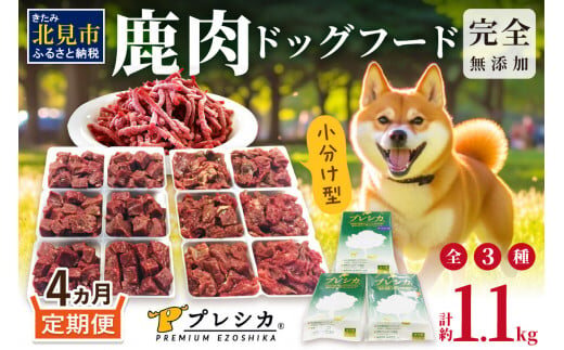 【4ヶ月定期便】鹿肉三昧 小分けタイプ約1.1kg ペット用鹿肉ドッグフード ( 肉 ペットフード 愛犬 ミンチ ロース アバラ 定期便 )【999-0068】