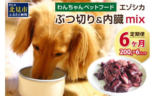 【6ヶ月定期便】エゾシカぶつ切り&内臓mix ( 犬 えさ 餌 犬の餌 ペットフード 鹿 エゾシカ肉 鹿肉 健康 安心 内臓 )【999-0070】