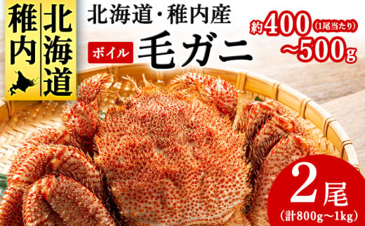 <2025製造>北海道産稚内加工ボイル毛ガニ2尾(1尾約400g~500g×2)合計800g~1k