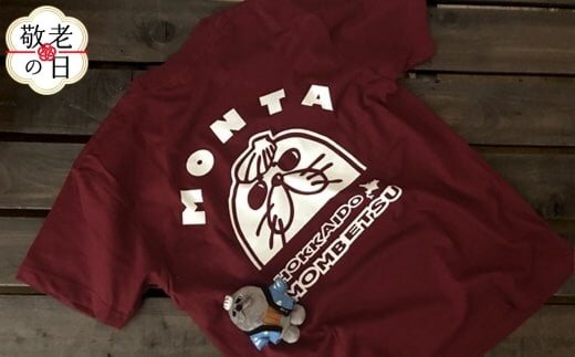 17-174 【敬老ギフト】ゆるキャラ紋太グッズ(Tシャツ[バーガンディーM]、ぬいぐるみ小)