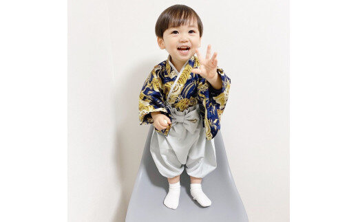ぽわんパンツの袴(上下) 色:ネイビー×シルバー サイズ:S 素材:cotton100% 寸法:着丈33cm・裄丈32cm・身幅32cm・ウエスト42~84cm・パンツ丈38cm 目安身長:50~80cm 目安体重:5~12kg 目安月齢:3ヶ月~1歳半 |
