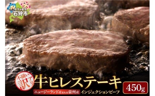 訳あり 牛ヒレステーキ(450g)(※約5~12枚前後・入数の指定不可)サイズ不揃い【牛脂注入加工肉】| ふるさと納税 北海道 石狩市 お肉 牛肉 ビーフ 牛ひれ ステーキ肉 柔らかい 赤身肉 加工肉 カット済み スライスカット ステーキカット 食べやすい 小分け 小分け冷凍