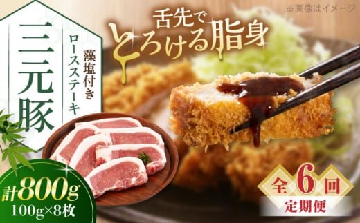 【全6回定期便】平田牧場 ロースステーキ 800g (100g×8枚) ※藻塩付 《喜茂別町》【平田牧場】肉 豚肉 ロース ステーキ ステーキ用 とんかつ 生姜焼き 定期便 北海道 [AJAP028] 102000 102000円