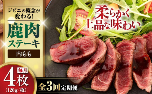 【全3回定期便】鹿肉 ステーキ ( 内もも ) 4枚《喜茂別町》【EBIJIN】 ジビエ 鹿 モモ ステーキ ステーキ用 赤身 冷凍 冷凍配送 北海道 [AJAO053] 48000 48000円