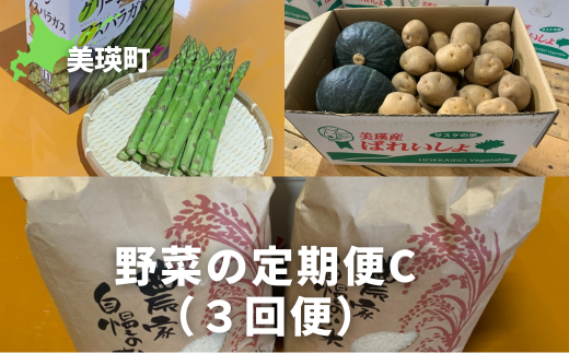 【先行予約】 野菜 定期便 C 3回便 <令和8年産 > セット 詰め合わせ サスケの家 グリーンアスパラ2kg(L~2L)、秋野菜(かぼちゃ1~2個・じゃがいも 約10kg)・米(ななつぼし)10kg[062-03]