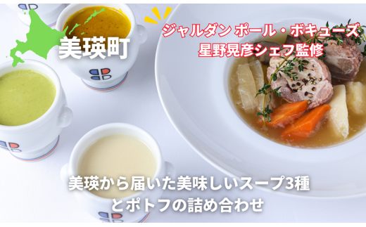 ポトフ スープ 美瑛から届いた美味しいスープ3種とポトフの4個詰め合わせ (ラスノーブル・とうもろこし・ブロッコリー・美瑛豚のポトフ 各1個) 【ジャルダン ポール・ボキューズ 星野晃彦シェフ監修】| セット レトルト インスタント 国産 [020-98]
