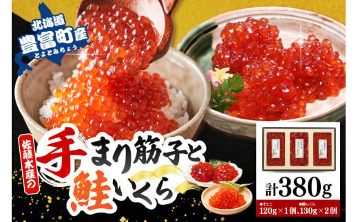 佐藤水産 【豊富産】いくら130g×2個 & 手まり筋子120g×1個セット 計380g【KAT-312】