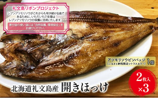 【礼文島リボンプロジェクト】北海道礼文島産 開きほっけ(2枚入)×3