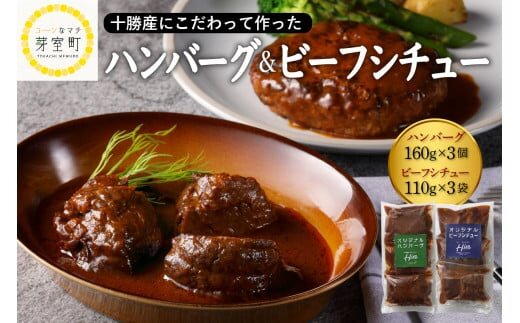北海道十勝芽室町 湯煎で簡単!手ごねハンバーグ 160g×3個 ビーフシチュー 110g×3個 セット <レストランHiroオリジナル> me026-008c