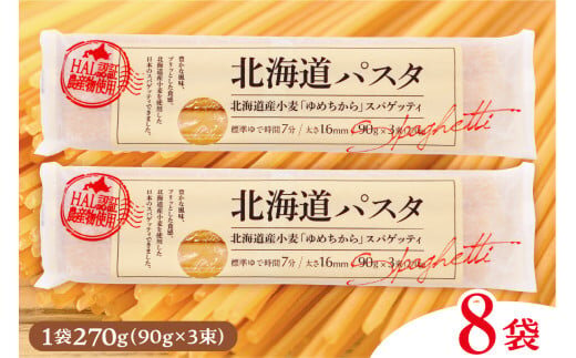 北海道十勝芽室町 北海道産小麦 ゆめちから 国産 スパゲッティ!北海道パスタ 270g × 8袋 me026-013c