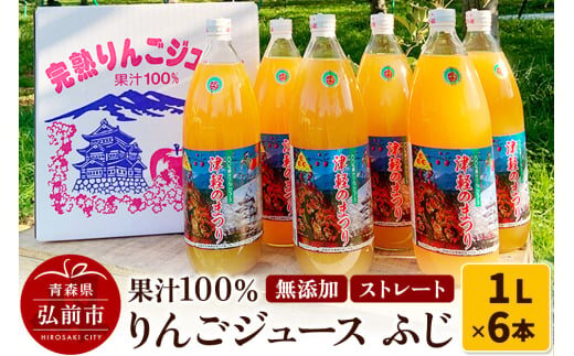 りんごジュース ふじ 1L×6本 計6L 無添加 ストレート果汁100%!青森県特別栽培農産物認証農【レビューキャンペーン】