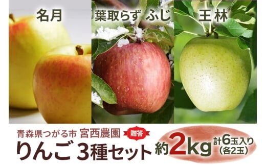 [贈答用] 名月×葉取らずふじ×王林【約2kg 各2玉入り 計6玉】贅沢りんご 3種セット|令和7年 2025年 ギフト 青森産 津軽 つがる りんご リンゴ 果物 フルーツ めいげつ フジ おうりん [0682]
