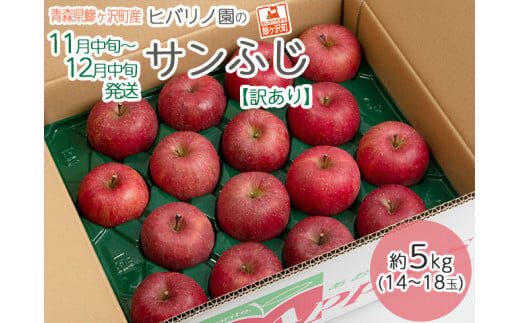 【出荷予定:2025年11月20日~12月15日 [訳あり] 人気の青森県産りんご 白神山地の麓、津軽鰺ヶ沢町のヒバリノ園のサンふじ 約5kg (14~18玉)を、生産農家より産地直送でお届け!】