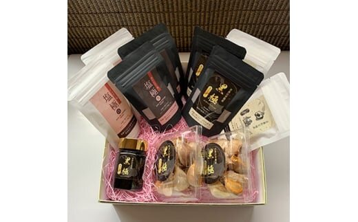 青森県・常盤産ホワイト六片のニンニクを使用し、乾燥させサラサラに加工したニンニク塩・ニンニク粉、黒ニンニク塩と黒ニンニク粉の4種類入り。パウダー調味料ですので様々なお料理のアクセントにお使い頂けます。またじっくり熟成させた黒ニンニク2個と、黒ニンニクペーストもセットです。黒ニンニクはそのままでもお召し上がり頂けますし、黒ニンニクペーストもそのままでお召し上がり頂くか、お料理に混ぜてご使用にもなれます。(黒ニンニクは1日につき1片くらい、黒ニンニクペーストは、1日につきコーヒースプーン1/3くらいの摂取量を目安としています。)