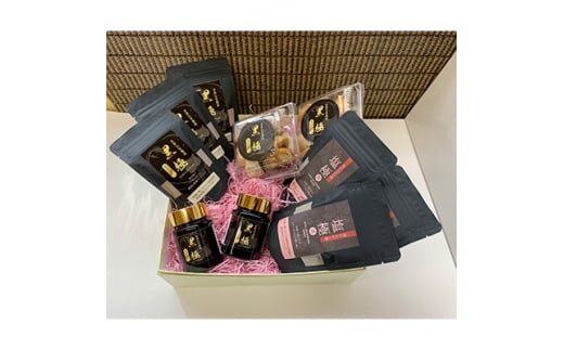 ■内容量/原産地 にんにくパウダー(黒極) 45g×3袋 にんにく塩 塩極(黒) 45g×3袋 黒にんにく 約100g×2パック 黒にんにくペースト 70g×2本 原産地:すべて青森県藤崎町 ■原材料 ニンニク、塩 |
