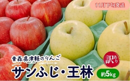 【11月下旬発送】【訳あり】青森県津軽のりんご「サンふじ・王林」約5kg