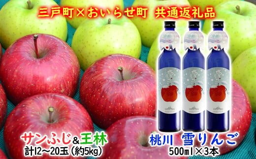 【三戸町×おいらせ町 共通返礼品】りんご「サンふじ&王林」×お酒「雪りんご」セット(先行予約 12月発送)