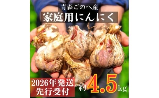 <先行受付:2026年7月より発送>青森ごのへ町産にんにく 家庭用土付き Lサイズ以上 約4.5kg【1599842】