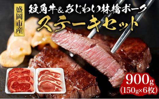 牛肉 豚肉 ステーキ肉 900g ( 150g × 6枚 ) セット 詰め合わせ もりおか短角牛 もりおかあじわい林檎ポーク 国産 牛ステーキ ステーキ 牛 豚 肉 短角牛 国産牛 国産牛肉 国産豚 国産豚肉 アウトドア キャンプ BBQ キャンプ飯 岩手 岩手県 盛岡市