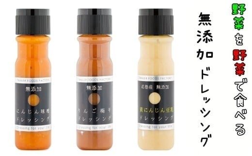 旬のドレッシング 150ml×3本 全9種類(人参味噌、りんご梅干、ミニトマト、りんご豆乳、黄人参豆乳、葡萄と林檎のフルーティ、にんにく胡麻味噌、玉ねぎ黒胡椒、辛長ねぎドレッシング) ※ドレッシングの種類(3種類)はお任せになります。 |