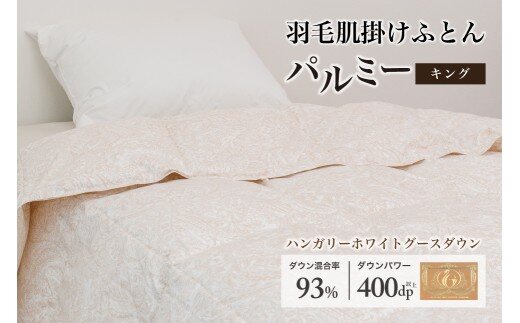 羽毛布団キング 肌掛け[パルミー]上質 綿100%×ハンガリーホワイトグース ダウン93% ダウンパワー 400dp 【富士新幸 花巻工房】 【2218】