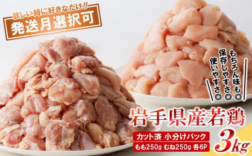 【12月発送分】「小分け、カット済!」岩手県産若鶏 もも肉250g×6P、むね肉250g×6P 計3kgセット 国産 鶏肉 むね もも カット済 小分け 選べる 発送月 冷凍 大容量 業務用 チキン 250g入 計 3.0kg 若鶏 送料無料 唐揚げ おすすめ 便利