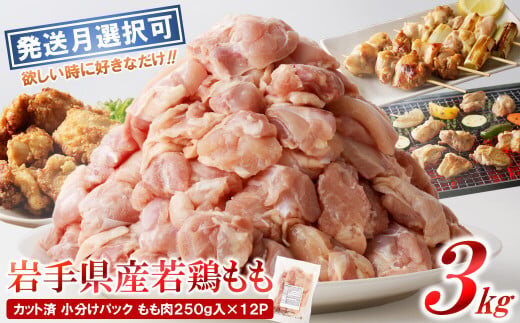 【11月発送分】「小分け、カット済!」岩手県産若鶏 もも肉250g×12P 計3kgセット 国産 鶏肉 もも カット済 小分け 選べる 発送月 冷凍 大容量 業務用 チキン 250g入 計 3.0kg 若鶏 送料無料 唐揚げ おすすめ 便利