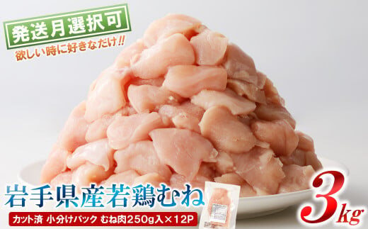 【11月発送分】「小分け、カット済!」岩手県産若鶏 むね肉250g×12P 計3kgセット 国産 鶏肉 むね カット済 小分け 選べる 発送月 冷凍 大容量 業務用 チキン 250g入 計 3.0kg 若鶏 送料無料 唐揚げ おすすめ 便利