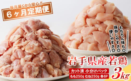 【6カ月定期便】「便利な小分け、カット済!」岩手県産若鶏 もも、むね肉セット 計3kg