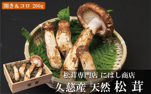 久慈産天然松茸「開き&つぼみ(コロ)」 200g ※香り抜群の開き松茸とつぼみ(コロ)松茸が入ります。 |