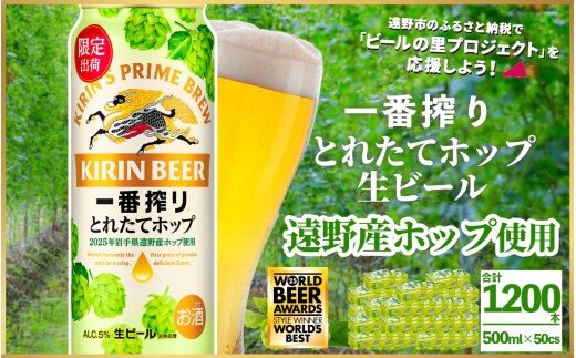 キリン 一番搾り とれたてホップ 生ビール 500ml × 24本 50ケース 【 先行予約 2025年11月4日より順次発送 】 < 遠野産ホップ 使用 > 限定 ビール お酒 BBQ 宅飲み 家飲み 晩酌 ギフト 缶ビール KIRIN 麒麟 きりん キリンビール 人気 < ビールの里 農家 支援 応援 > WBA2025 International Lager 世界一