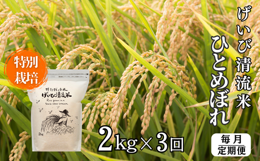 ≪ 令和7年産 新米 ≫【定期便3回】特別栽培 ひとめぼれ 2kg 清流が育んだお米 げいび清流米 岩手 お米 いわて コメ 精米 ブランド米 ご飯 白飯 ごはん お弁当 おにぎり 袋 東北 国産 岩手県 一関市