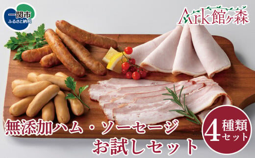 館ヶ森高原豚 ①ミニウインナー 95g ②あらびきソーセージ 85g(5本) ③ベーコンスライス 85g ④ロースハムスライス 68g |