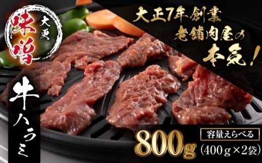 大正7年創業 老舗肉屋の本気! 味付き牛ハラミ 400g 2袋 【肉の横沢】/ 肉 牛肉 牛ハラミ 牛はらみ ハラミ はらみ 味噌 みそ 味噌味 みそ味 400g 800g 800g 真空 真空パック 焼くだけ こだわり 味付き お取り寄せ 家庭用 自宅用 焼肉 焼き肉 人気 冷凍 おすすめ