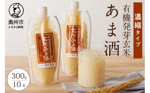 玄米あま酒 有機発芽玄米 濃縮タイプ 300g 10本 甘酒 米麹 有機玄米 飲料 [AD004]