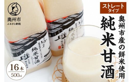 純米甘酒 ストレートタイプ 500ml×16本入 餅米 あま酒 ノンアルコール 岩手県産 [AD015]