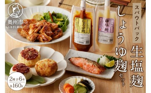 生塩麹・しょうゆ麹セット 発酵食品 調味料 セット 麹 各160g×3 チューブ形式 スパウトパウチ [AD017]