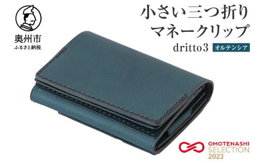 小さい三つ折りマネークリップ dritto 3 三つ折り財布 革製品 本革 牛革 オルテンシア(青系) [BJ002VC03]
