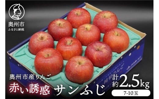 奥州市産りんご 赤い誘惑「サンふじ」約2.5kg 7-10玉 優品 フルーツ 果物 1箱 [AQ079]