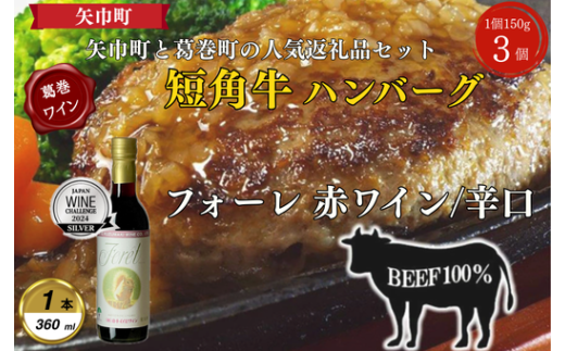 岩手県 葛巻町×矢巾町 フォーレ赤360mlと短角牛ハンバーグ3個 セット<複数個口で配送>【4014536】