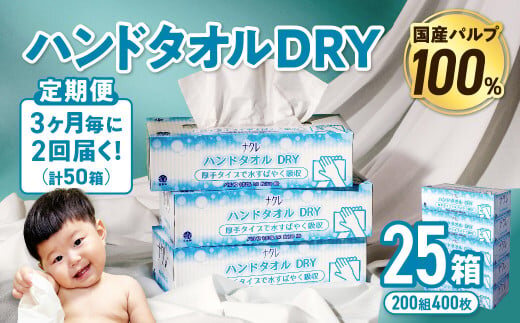 【2回配送/3ヶ月に1回定期便】ナクレ ハンドタオルDRY 25個 ペーパー タオル 紙 厚手 ティッシュ キッチン 日用品 消耗品 防災 収納 備蓄 金ケ崎 金ヶ崎