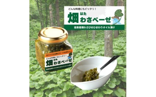 ■お礼品の内容について ・畑わさベーゼ[2個] 原産地:岩手県岩泉町 ■原材料・成分 原材料名:塩蔵茎わさび(岩手県岩泉町製造)、食用ひまわり油、かつおぶし混合エキスパウダー(サバを含む)、ゴマ、フライドガーリック、フライドオニオン、野菜香味調味料(ゼラチン・乳成分を含む)/香辛料抽出物(大豆由来)、調味料(アミノ酸等)、着色料(クチナシ)、香料 |