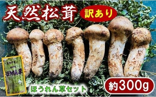 【期間限定】 岩手県産 松茸 天然 約300g 国産 松茸訳あり (つぼみ、開き、傷もの等)&ほうれん草一束セット 【数量限定】