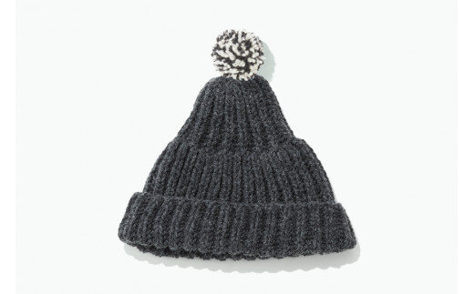 【気仙沼ニッティング】ポンポン帽子(チャコールグレー)ポンポンカラー: チャコールグレー×生成り(杢) [気仙沼ニッティング 宮城県 気仙沼市 20563309-4]