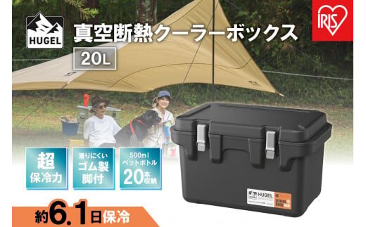 クーラーボックス 真空断熱クーラーボックス HUGEL アイリスオーヤマ 20L チャコールグレー 大型 釣り 真空断熱 高保冷 断熱ハードクーラー コンパクト アウトドア キャンプ BBQ スポーツ レジャー おすすめ 人気 アイリス VITC-20