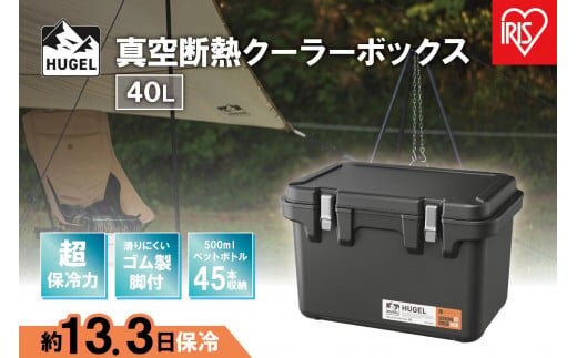 クーラーボックス HUGEL 真空断熱クーラーボックス 40L 大型 大容量 アイリスオーヤマ 6面真空断熱パネル 真空断熱 高保冷 アウトドア キャンプ BBQ 釣り スポーツ レジャー アイリスオーヤマ VITC-40チャコールグレー