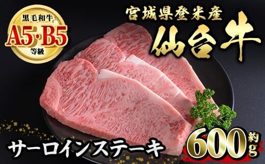 仙台牛 サーロインステーキ 約600g ( 約200g × 3枚 ) 登米市産 牛肉 お肉 にく 宮城県産 国産【有限会社小竹精肉店】tm014