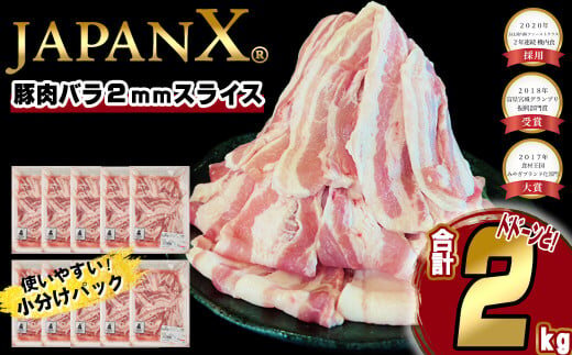 JAPAN X 豚バラ2mmスライス/計2kg<2025年12月以降順次発送> 豚肉 豚 ブランド豚 小分け 豚バラ ジャパンエックス 蔵王 人気 【04301-0046】